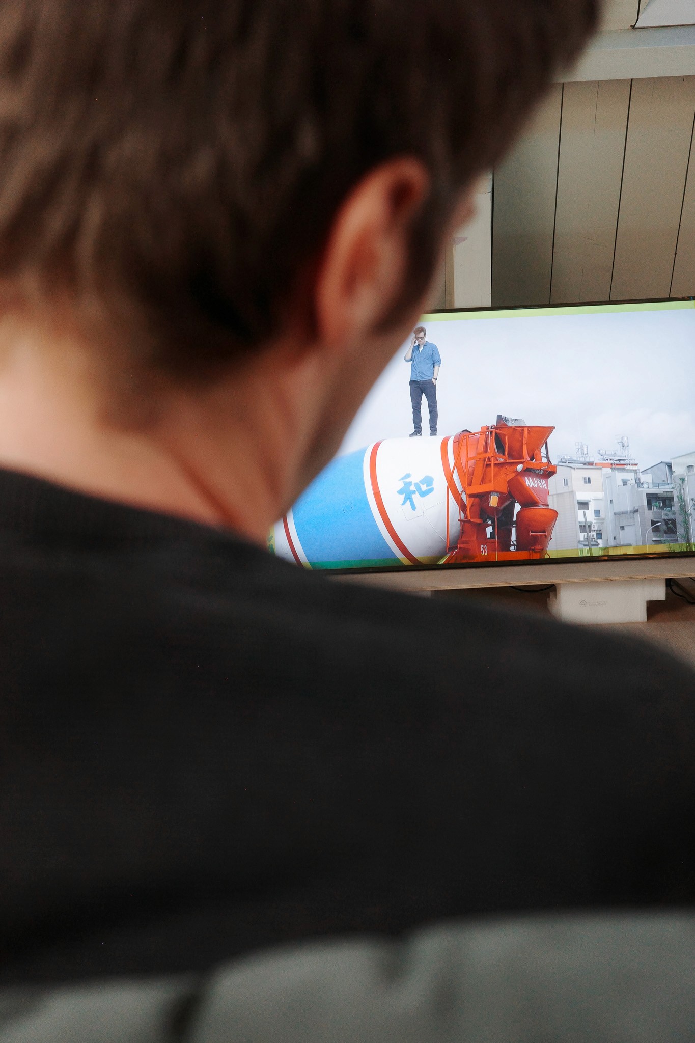 Zowel surrealistisch als teder. De industriële vrachtwagen contrasteert met de vertrouwde omgeving waarin je je bevindt. Tijdens een residentie in Taiwan belde Karel elke week zijn ouders in Nederland, en overbrugde continenten met deze eenvoudige maar intieme handeling. Tijdens dit gesprek bevond hij zich in twee realiteiten: thuis bij zijn ouders en tegelijkertijd aan de andere kant van de wereld. Je wordt uitgenodigd om plaats te nemen en mee te luisteren naar een persoonlijk moment – en na te denken over afstand, verbondenheid en de absurditeit van het behouden van intimiteit in een geglobaliseerde wereld.