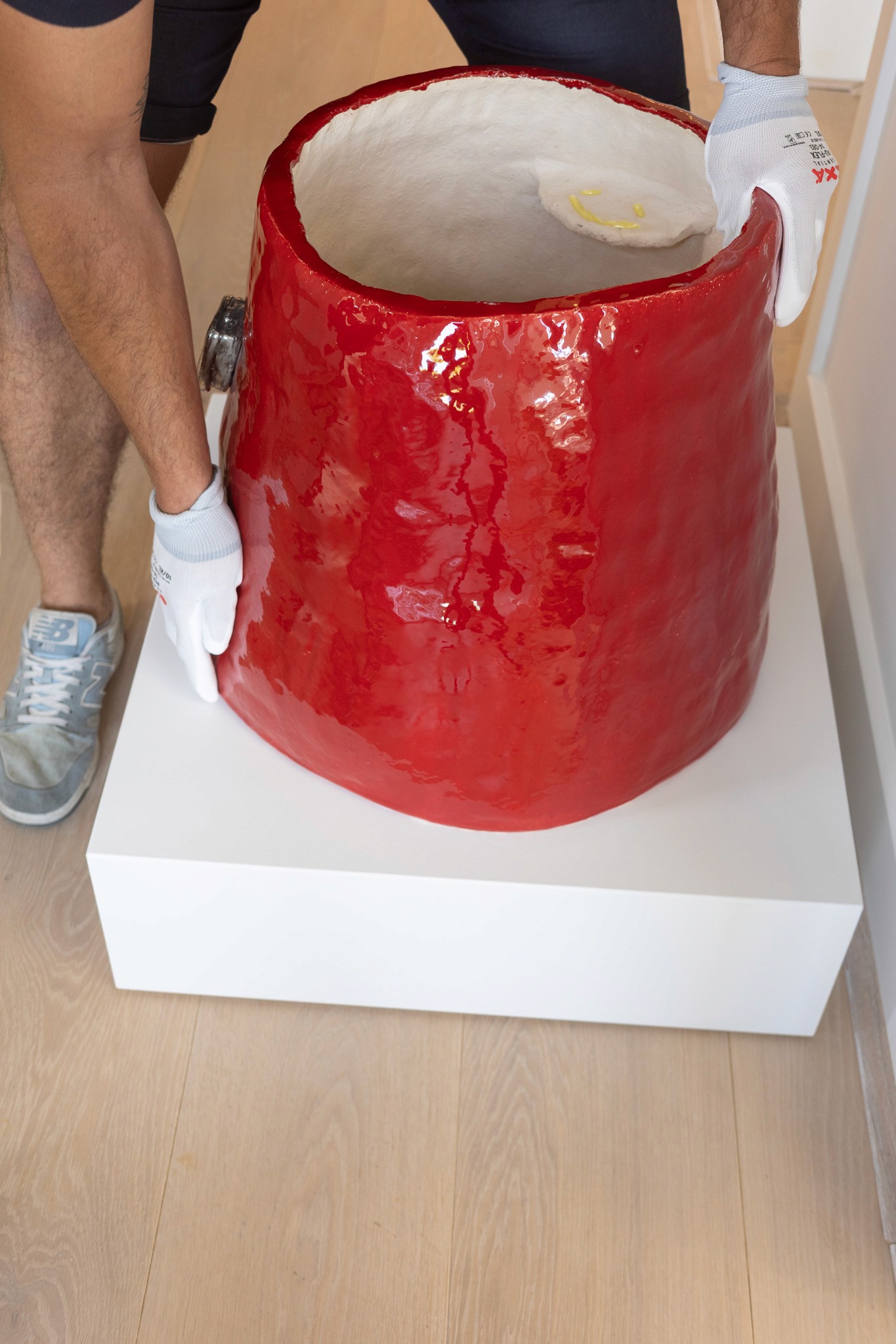 Verborgen in het volle zicht zijn de keramische werken van Koos Buster verspreid door Villa. Op de eerste verdieping is de felrode Kauwgombalmachine (2025) niet te missen. De andere acht werken zijn onopvallend verborgen op verschillende plekken in het gebouw. Een brandalarm, een EHBO-doos, een beveiligingscamera. Essentiële objecten die we als vanzelfsprekend beschouwen – door Buster opnieuw vormgegeven in klei en glas. Sommige stukken vallen meteen op, andere verdwijnen bijna, omdat ze naadloos opgaan in het alledaagse.