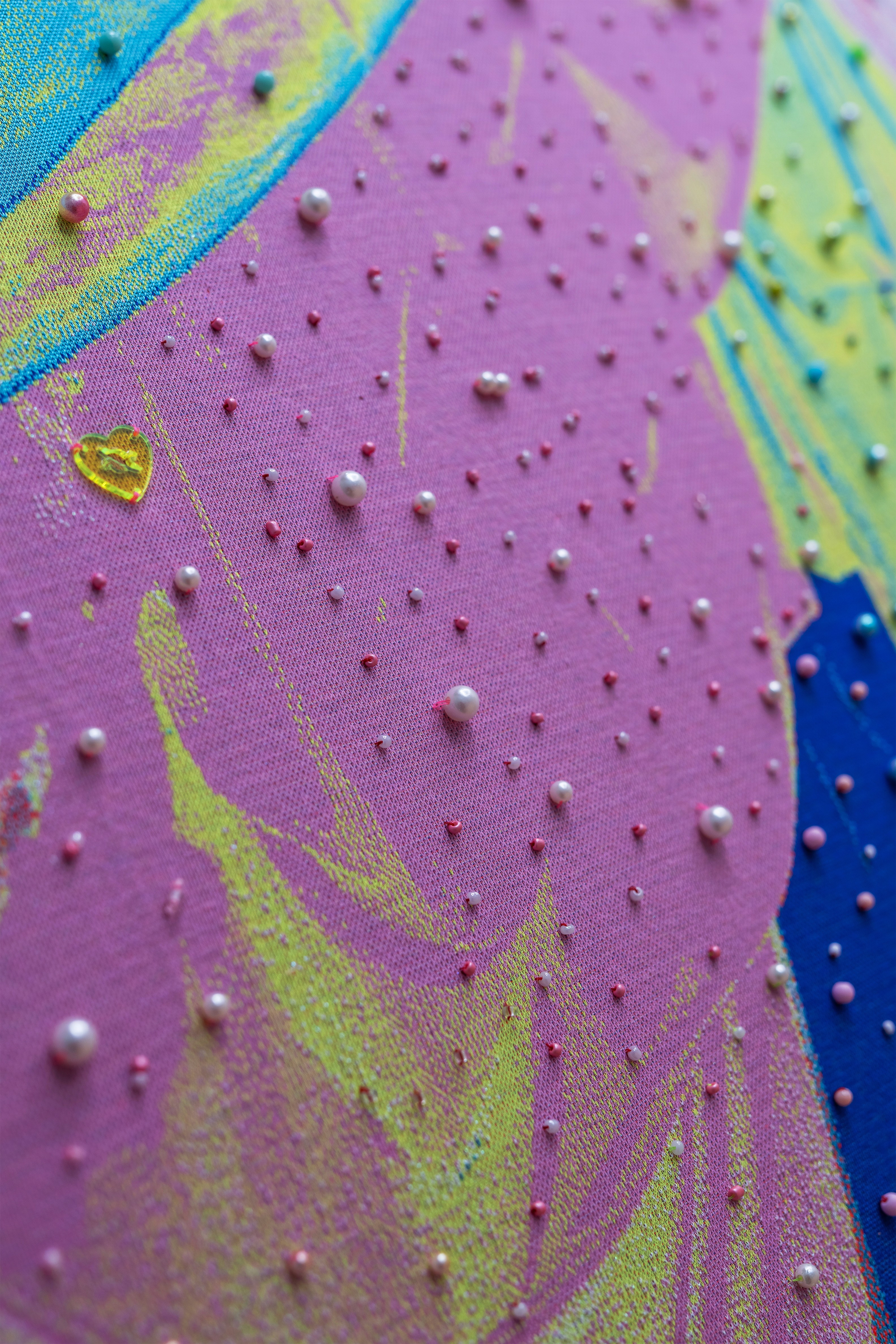 De doeken zijn gebreid, fel van kleur en levendig doordat de wol is bedekt met kralen en glitters. Ze noemt de gebreide kunstwerken ook wel liefdesbrieven aan de vrouwen in haar leven. Zo is haar beste vriendin Sydney afgebeeld als een weelderige Venus. Zelf zegt ze hierover in een interview met de VPRO: “Voor deze werken heb ik vrienden uit mijn community uitgenodigd in mijn studio, waar ik hen fotografeerde in een set die was geïnspireerd op renaissanceschilderijen, met elementen van romantiek en decadentie. Daarna heb ik de foto bewerkt en geprogrammeerd om hem te kunnen breien. Wat ik hier zo mooi aan vind, is dat door het breisel de portretten ook iets anoniems krijgen. En juist door die anonimiteit voel ik dat meer mensen zich ermee kunnen verbinden. Dat is wat ik zo waardeer aan het breien.”[3]